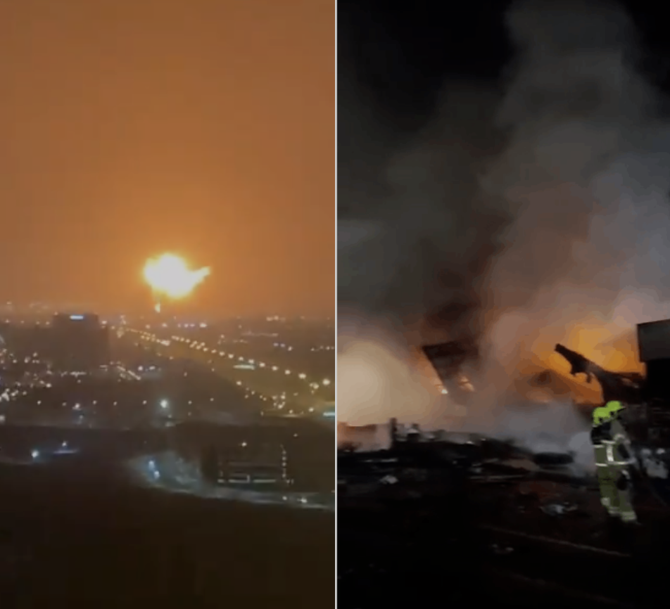 火災(zāi)隨后引發(fā)大規(guī)模爆炸,報(bào)道稱,據(jù)當(dāng)?shù)厝嗣枋觯麄€(gè)城市不少建筑物都在震動(dòng)。甚至有市民表示25公里外窗戶都在振東,視頻畫面顯示,爆炸發(fā)生后,現(xiàn)場(chǎng)雜物散落,仍有不少起火點(diǎn),現(xiàn)場(chǎng)濃煙滾滾。