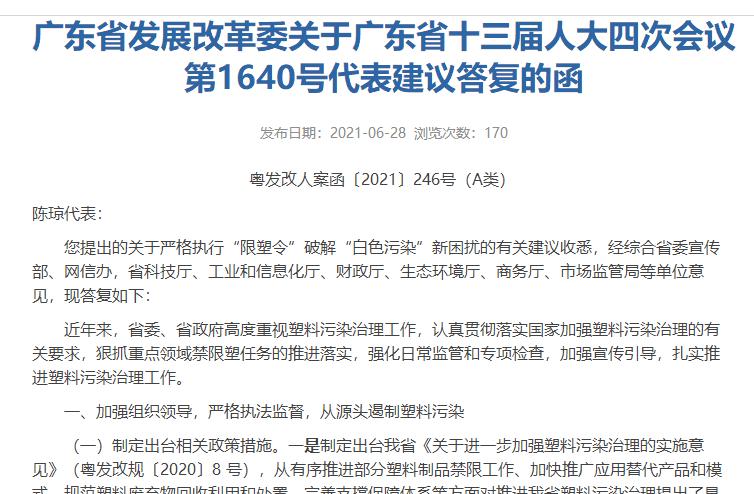 截止6月28日,廣東共檢查塑料生產企業687家,銷售單位17911戶,責令整改66起,查辦違法96宗。
