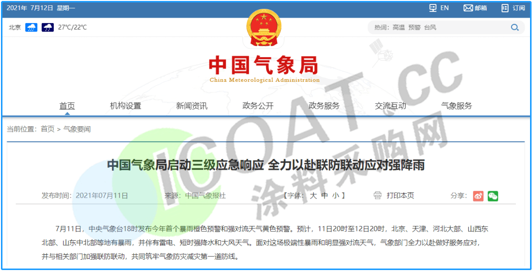 繼中國氣象局啟動四級應急響應狀態后,11日18時,中央氣象臺升級發布暴雨橙色預警和強對流天氣黃色預警,并將應急響應狀態由原Ⅳ級提升為Ⅲ級。據悉,這是中央氣象臺今年首次發布暴雨橙色預警。