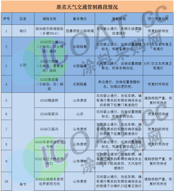 重慶21個區縣暴雨,全市8條中小河流8個水文站11次超警戒水位,其中4條中小河流4個水文站7次超保證水位。重慶市決定對部分路段實行臨時交通管制。