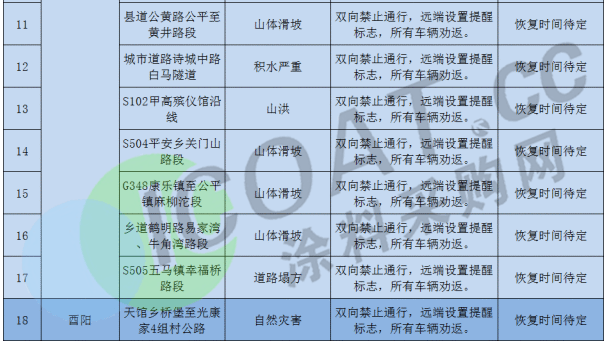 受此次暴雨影響,巴陜高速關壩站泥沙沖刷堆積路面造成收費站關閉;巴廣渝高速馬鞍、大寅等多處路段積水嚴重,正應急搶險;巴州區北環線、南江縣沙溪壩山體塌方,交通中斷;恩陽區漁溪鎮多處漫水橋被淹。