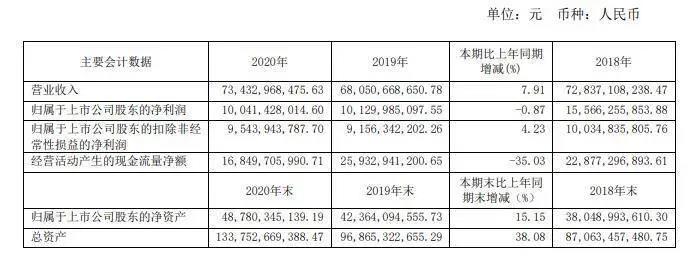 數(shù)據(jù)顯示,截至2020年末,萬華化學總資產(chǎn)規(guī)模達1337.53億元,同比增長 38.08%;實現(xiàn)銷售收入734.33億元,同比增加7.91%;實現(xiàn)歸屬于上市公股東的凈利潤100.41億元,同比下降0.87%;每股收益3.2元。而在2019年9月,這家上市企業(yè)市值不到1400億元。