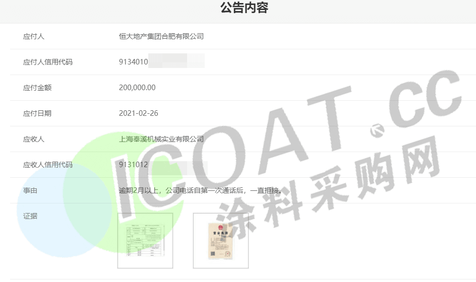 上海奉溪機械實業有限公司反饋,恒大地產集團合肥有限公司20萬元承兌匯票預期,逾期2月以上,公司電話自第一次通話后,一直拒接。