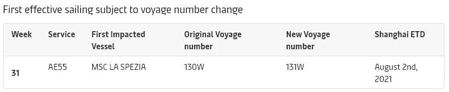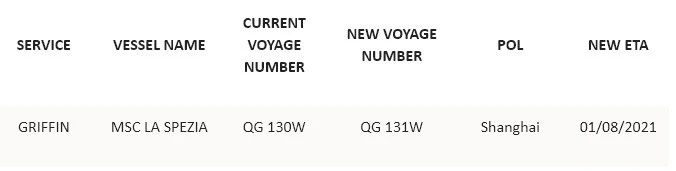 因此決定,14,000TEU的MSC La Spezia 將從第 29 周滑至第 30 周,預計抵達上海的預計時間 (ETA) 將調整為2021年 8 月 1 日。