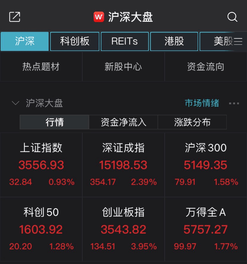 上周五央行宣布降準,約1萬億元長期資金釋放在即,A股迅速沸騰。本周一(12日)早盤,A股三大指數高開高走,創業板指漲勢強勁,創逾6年新高。超3000只個股上漲,市場賺錢效應“極好”。