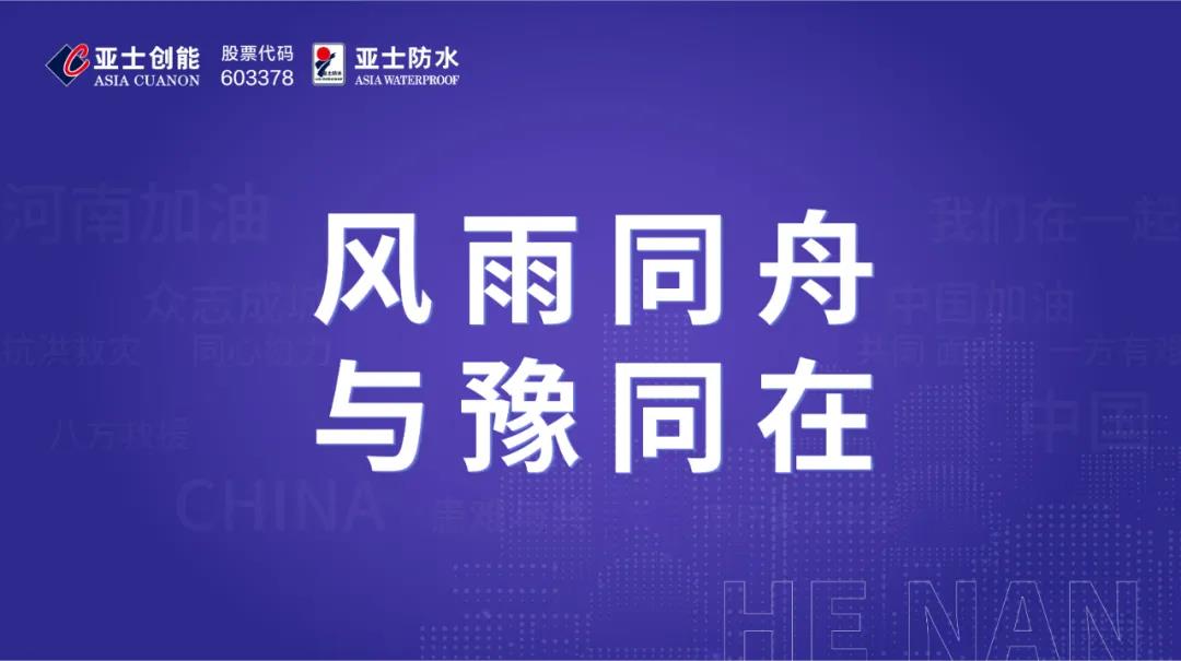 天災無情人有情,亞士創能與河南人民風雨同舟,與豫同在。下一步,亞士創能將密切關注河南災情變化情況,秉持亞士創能一貫的責任和擔當,為抗洪救援做出更多貢獻。