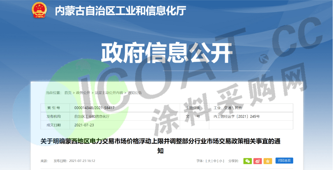 內(nèi)蒙古工信廳下發(fā)《關(guān)于明確蒙西地區(qū)電力交易市場價格浮動上限并調(diào)整部分行業(yè)市場交易政策相關(guān)事宜的通知》(內(nèi)工信經(jīng)運(yùn)字〔2021〕245號),自2021年8月起,蒙西地區(qū)電力交易市場燃煤發(fā)電電量成交價格在基準(zhǔn)價(每千瓦時0.2829元)的基礎(chǔ)上可以上浮不超過10%(上限為每千瓦時0.3112元)。