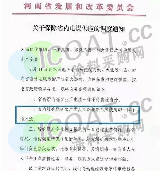 河南發(fā)改委近期發(fā)布《關(guān)于保障省內(nèi)電煤供應(yīng)的調(diào)度通知》,其中提到:為了確保省內(nèi)電煤供應(yīng),要求省內(nèi)所有煤礦生產(chǎn)電煤一律不得售往省外,省內(nèi)所有煤礦生產(chǎn)煤炭可以轉(zhuǎn)做電煤使用的一律不得入洗。