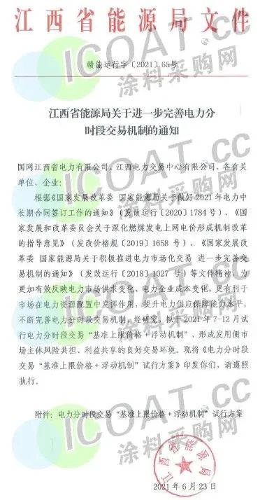 江西省能源局發(fā)布關(guān)于進(jìn)一步完善電力分時段交易機(jī)制的通知。擬于2021年7月-12月試行電力分時段交易“基準(zhǔn)上限價格+浮動機(jī)制”。