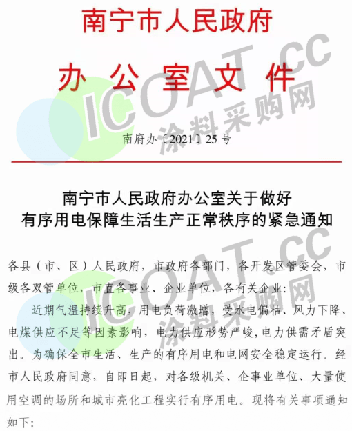 廣西南寧 發(fā)布文件,要求各級機(jī)關(guān)、企事業(yè)單位、大量使用空調(diào)的場所和城市亮化工程實(shí)行有序用電。