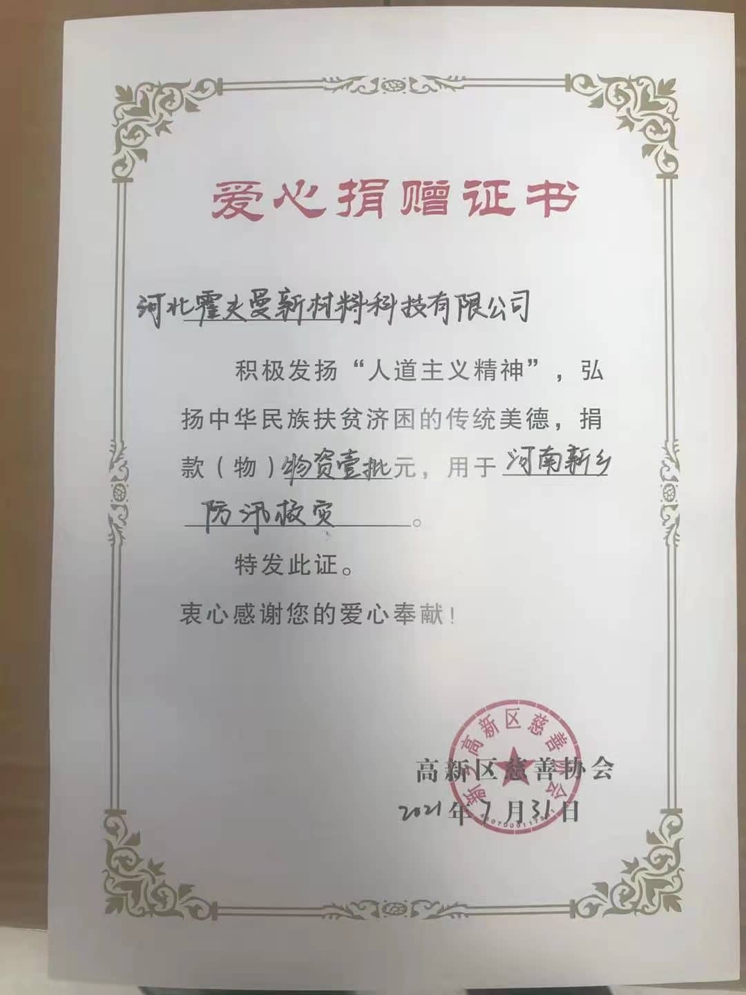 天災無情,人間大愛。在實時關(guān)注河南災情下霍夫曼化學協(xié)全體人員將本著天災無情人有情的想法,去為社會踏實的做一份事,霍夫曼化學全體人員與河南人民共風雨,共患難……踐行企業(yè)使命,彰顯社會責任!