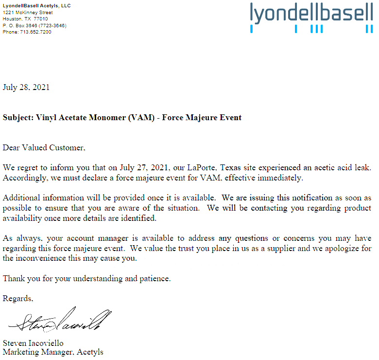 據(jù)涂料采購網(wǎng)了解,近期多家海外化工龍頭企業(yè)遭遇不可抗力,設(shè)備設(shè)施無法正常運行,導致交期延長或無法交貨,有些化工企業(yè)年初的不可抗力還沒有解除,市場供給一度陷入中斷,引發(fā)眾多化工人擔憂。