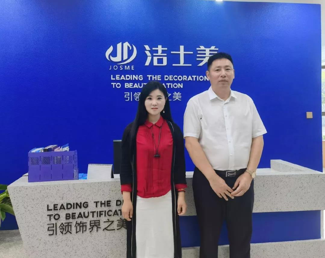 涂料采購網(wǎng)市場總監(jiān)王賽(左)與潔士美漆董事長趙孝文(右)合影