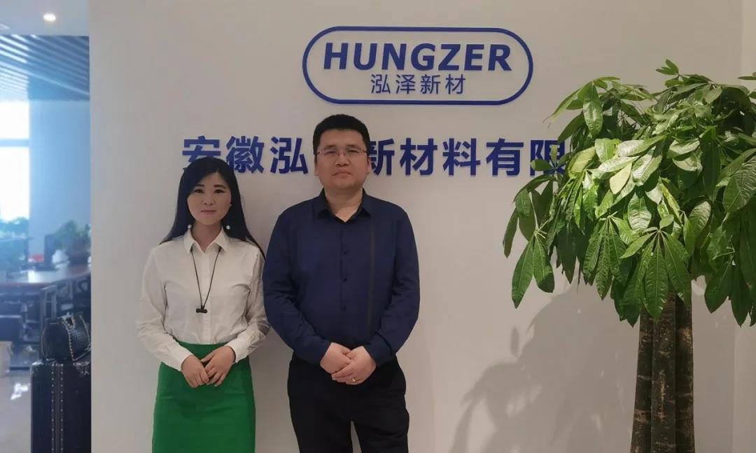 安徽泓澤新材料科技有限公司吳燕忠(右)與涂料采購網(wǎng)市場總監(jiān)王賽合影
