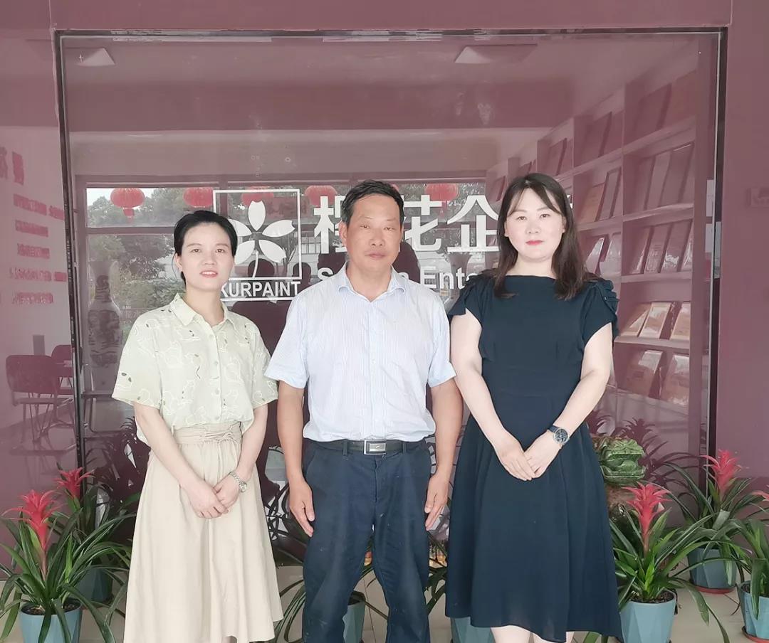 涂料采購網市場運營總監江雪攜杭州杜柏科技有限公司總經理陳趙、韓國賽諾—上海矽諾銷售經理鄧婷走進維成新材料