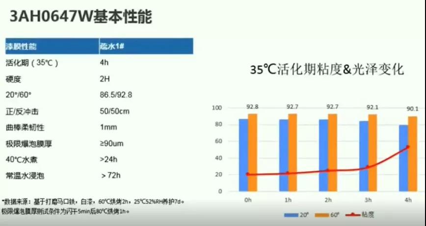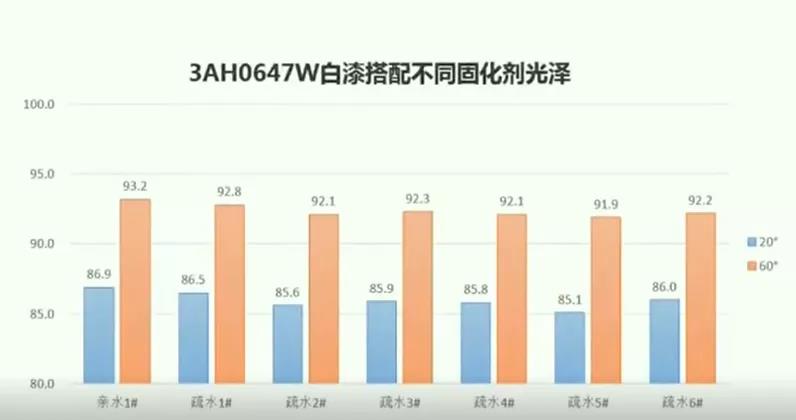 張總介紹,尚德信嘉銷售的同德羥丙樹脂3AH0647W產(chǎn)品是一款水性羥基丙烯酸分散體樹脂,具有優(yōu)異的顏料分散性和展色性,可搭配水性色漿亦可與顏料進行共研磨,也可以搭配異氰酸酯固化劑制得高性能高光澤漆膜。其與固化劑適用性較廣,可與XP2655等親水改性異氰酸酯固化劑搭配,亦可搭配與N3900等溶劑型固化劑搭配。涂料企業(yè)可以根據(jù)自己的需求進行添加和選用,根據(jù)選用固化劑、干燥工藝的不同,最終性能會有所差異。