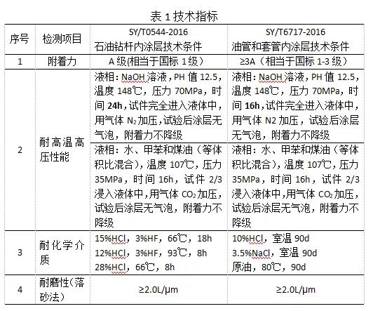 2.1我國石油開采用鉆桿及油套管內(nèi)涂層技術(shù)要求
