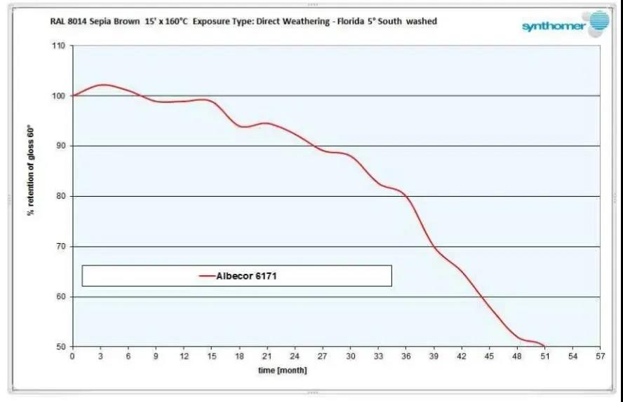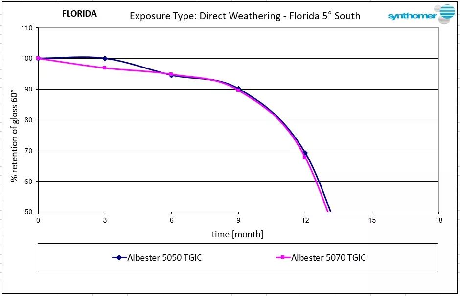 Albecor 6171佛羅里達5°向南曝曬測試結果