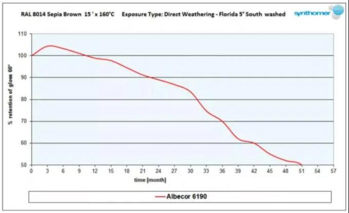 Albecor 6190佛羅里達5°向南曝曬測試結果