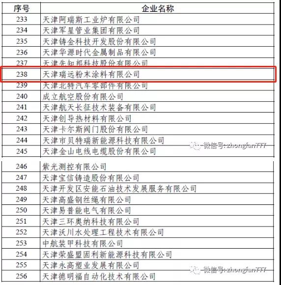 日前,工信部發布《關于促進中小企業健康發展的指導意見》,第三批專精特新“小巨人”企業,已完成各省級中小企業主管部門初核和推薦、行業協會限定性條件論證、專家審核等程序,現將通過審核的企業名單予以公示名單。作為管通防腐粉領軍企業天津瑞遠粉末涂料有限公司(以下簡稱“天津瑞遠”)成功入圍。