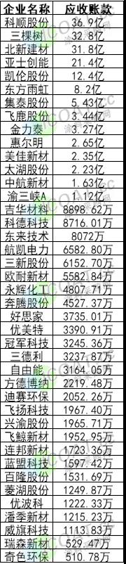 在涂料行業上市公司應收賬款排行榜上,14家涂料企業應收賬款超過1億元,25家涂料企業應收賬款超過1000萬元,科順股份(36.9億元)、三棵樹(32.8億元)、北新建材(31.8億元)、亞士創能(21.4億元)、凱倫股份(12.4億元)位居前五強的位置,這與凈利潤榜首的企業吻合較多。