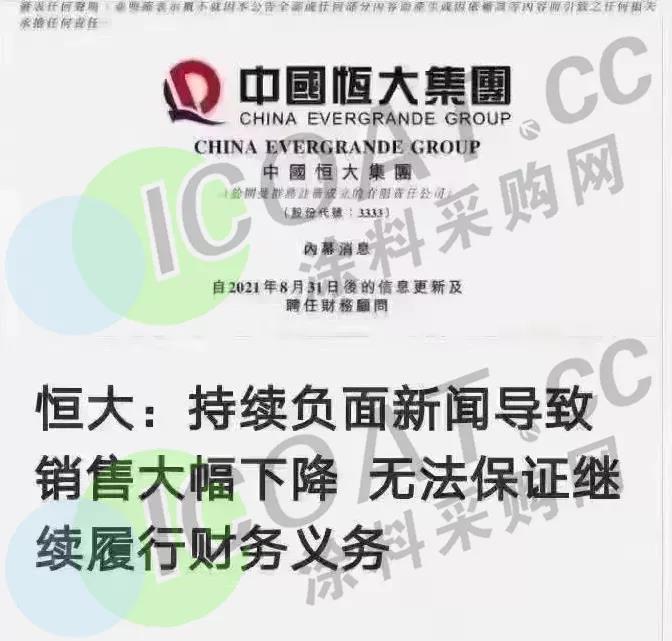 恒大集團作為房地產行業頭部企業,樹大根深,其危機加劇將對銀行、工程、建設、原料等行業的成千上萬家供應商產生影響。據涂料采購網不完全統計,十余家A股涂料上市公司2021年上半年應收票據及應收賬款高達280多億,新三板30余家涂料企業,應收賬款及應收票據累計高達20億左右,恒大的欠款占比多少尚不明確,但以恒大為代表的房地產龍頭想必占了較大的份額。這也就意味著,涂料行業300多億應收票款中絕大多數面臨著收不回來的巨大風險。而后續帶來的,或將是涂料企業壞賬增多,資金鏈斷裂。