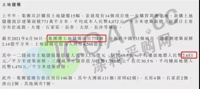 據恒大集團8月31日發布的半年報數據顯示,截至6月末,恒大總土地儲備項目778個,總規劃建筑面積2.14億平方米,土地儲備原值4568億元,如今這4000億資金是否打了水漂誰也無法定論。