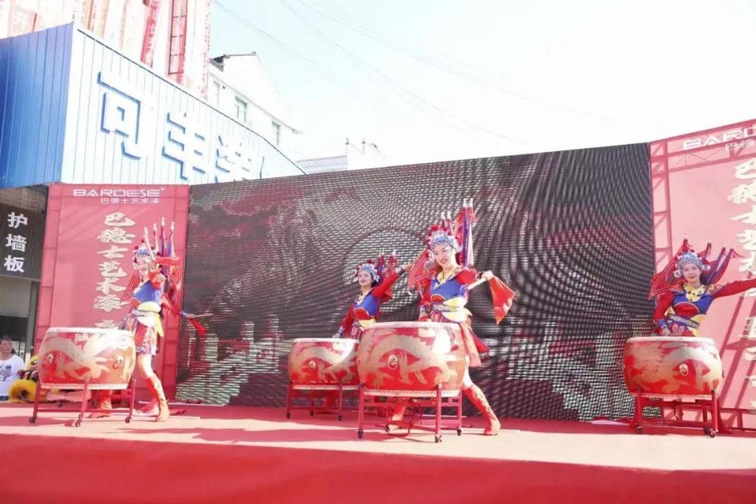 慶典活動在振奮人心的“鼓舞飛揚”中拉開帷幕,威風的鑼鼓,是催征的號角,驚天動地的鼓點,彰顯著錚錚鐵騎,勁勁雄風。寓意升級后的益陽巴德士將以昂揚的斗志,沸騰的熱血以及必勝的決心,與一眾涂料生意人發起決斗。