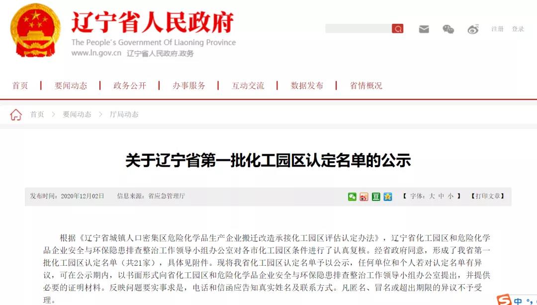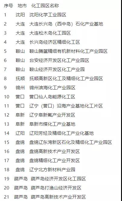 近日,遼寧省工業和信息化廳、發展改革委、自然資源廳、生態環境廳、應急管理廳公布《關于公布遼寧省化工園區名單(第一批)的通知》,共有22家園區入選。