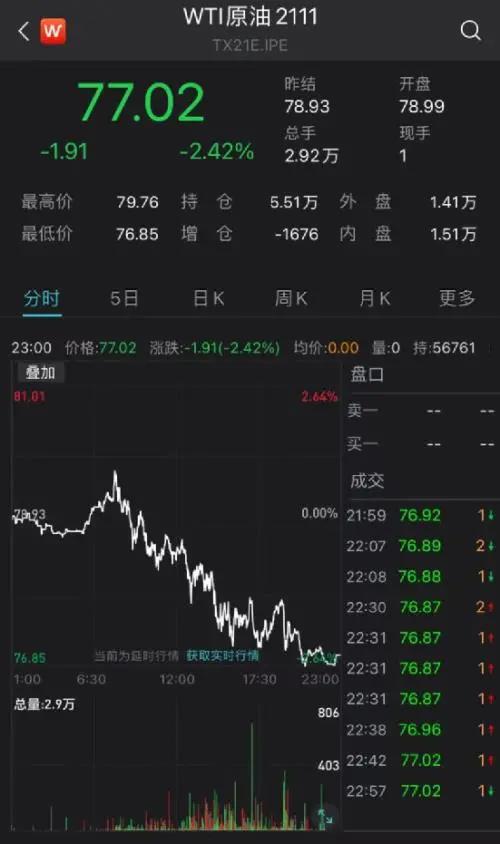 石油市場方面,美國原油庫存大幅超預(yù)期,還表示可能釋放緊急石油儲備,美油、布油也跌了。