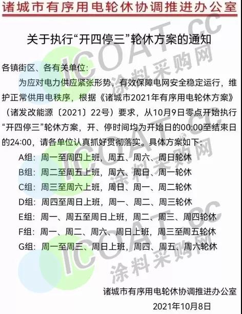 無論是云南、江蘇等地區的停限產,還是安徽、山東等地區的錯峰用電,本質上來說都是為了在能耗排放這場年終大考中反敗為勝。而對于化工企業來說,開工率降低、貨源緊缺,帶來的結果必然是貨緊價揚。據涂料采購網了解,下半年以來,由于能耗“雙控”趨嚴,限電限產后,隨之而來的就是原材料價格的暴漲。