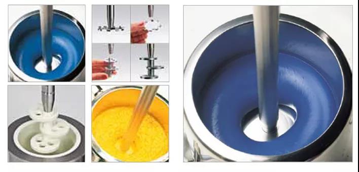 VMA?GETZMANN的Dispermat系列在實際的操作中,高速分散攪拌的過程,能看到轉軸和分散盤的中間部分沒有材料附著,即為“甜甜圈”流型,此為分散效果最佳的表現。在分散盤幾何結構、直徑選擇與放置高低、分散罐的液體裝填量、溫度控制等因素,也會造成不同的分散效果。