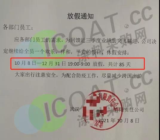 這張放假到年底的通知讓不少人感到哭笑不得,有人說,放假時間在夜里,相當于睡夢中度假。也有人說,明面上說是業績好放假,實際上是不是因為訂單少或者開不了工才放假呢?下一步是不是工廠也要徹底“放假”注銷呢?盡管聽起來像是個笑談,但實際上這種情況在近期并不鮮見。目前江蘇連云港、鹽城等地大多數化工企業已經停產放假,廣東、浙江、重慶、成都等多地的企業也陸續發出停產放假通知。
