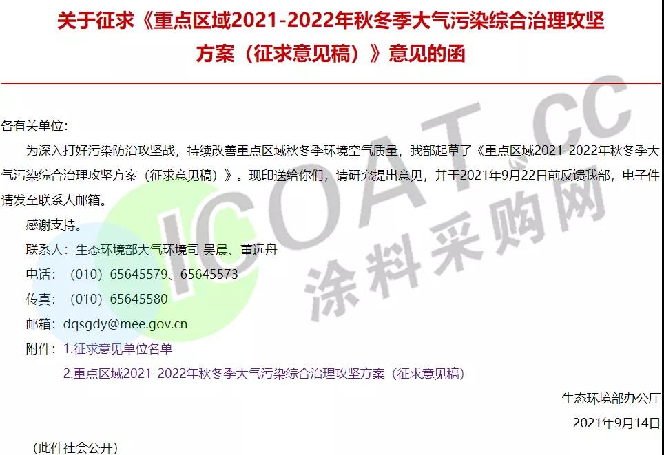 除以上因能耗“雙控”被嚴管的二十余個省市地區外,四季度也同時是大氣污染防治的重要時期,生態環境部為實現大氣污染綜合治理,也發布了每年例行的“停工令”,要求重點行業進行錯避峰開工生產。今年下半年生態環境部發布《重點區域2021-2022秋冬季大氣污染綜合治理攻堅方案(征求意見稿)意見的函》。意見征求截止日期為9月22日,正式稿即將正式發布。