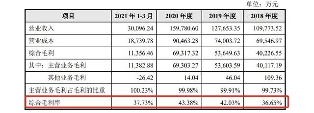 招股書顯示,雨中情綜合毛利分別為40,226.55萬元、53,649.63萬元、69,317.32萬元和11,356.46萬元,公司毛利主要來自主營業務,主營業務毛利占綜合毛利的比例均維持99%以上。報告期各期,公司綜合毛利率分別為36.65%、42.03%、43.38%和37.73%。