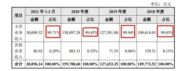 雨中情主營業務收入占營業收入的比例均超過99%,主營業務收入主要為建筑防水材料的銷售收入。