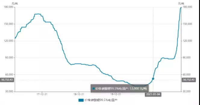 值得注意的是,在多氟多之前,另一家六氟磷酸鋰產(chǎn)業(yè)鏈的上市公司延安必康早在8月份就早早的公布了三季報業(yè)績預告。8月26日,延安必康公告稱,預計前三季度盈利5.5億元至6億元,比上年同期上升42-46倍。業(yè)績變動主要原因系公司下屬子公司江蘇九九久科技有限公司新能源產(chǎn)品受市場需求的影響,產(chǎn)能釋放,同時市場價格上漲等原因,致使利潤比去年同期上升,對公司業(yè)績增長起到積極促進作用。