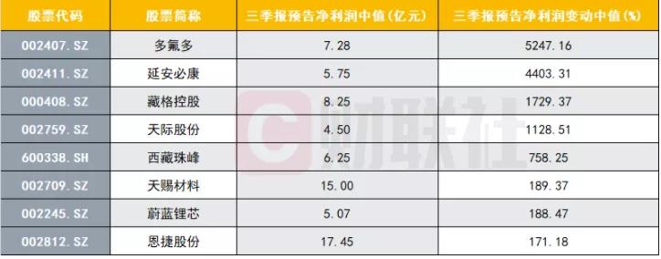 ?此外,已公布的三季報業(yè)績預告中,藏格控股、天際股份業(yè)績預增幅度均超過10倍。