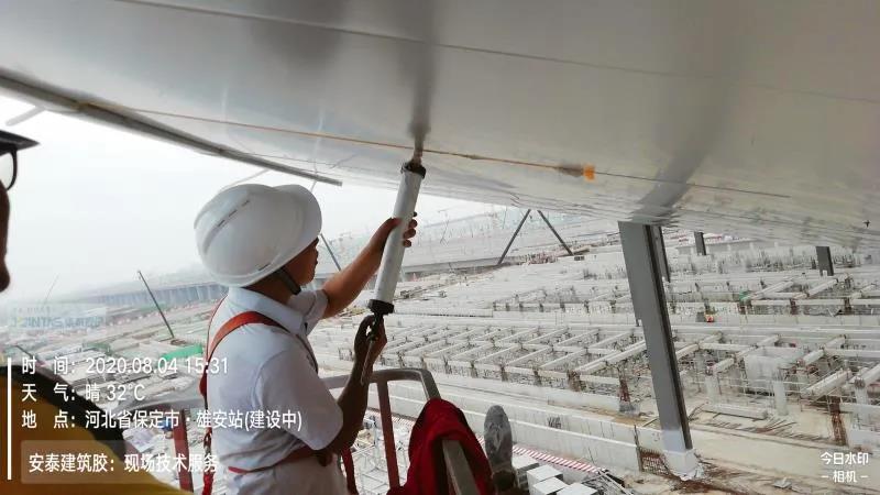 雄安高鐵站項目-安泰膠現(xiàn)場技術(shù)服務(wù)