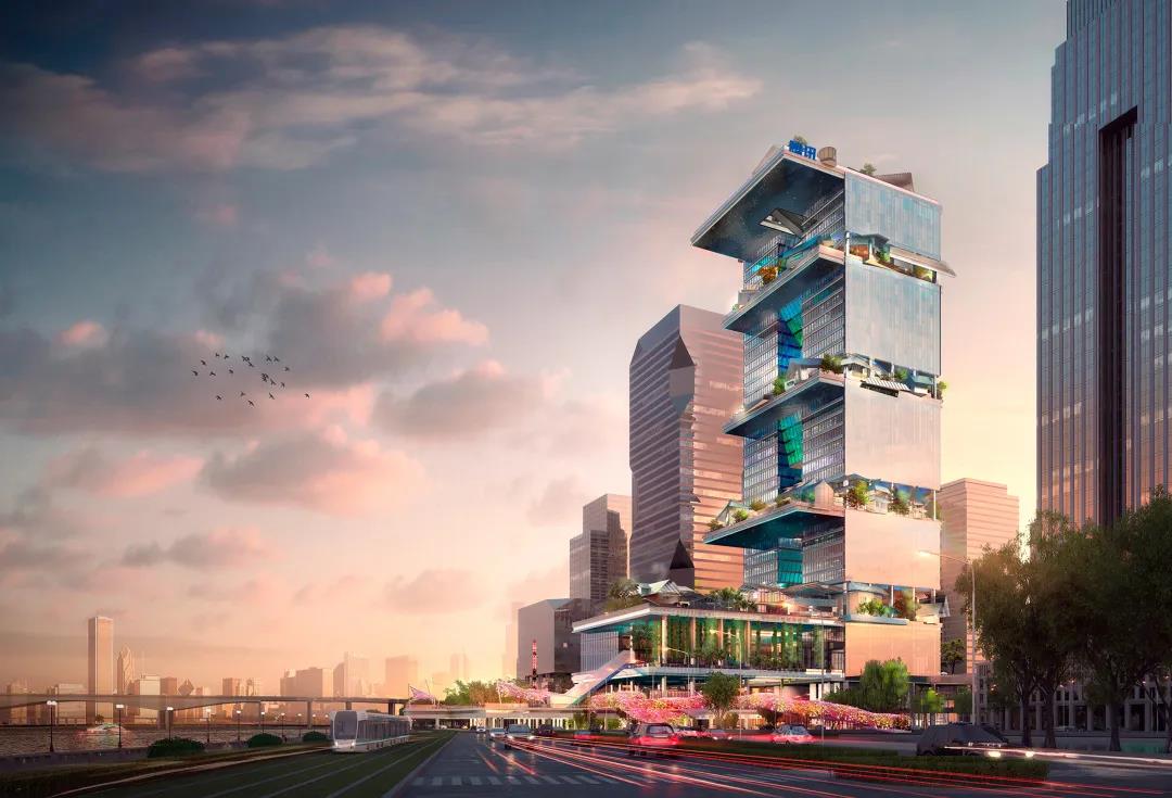 207米高的建筑,有4道懸挑,分別對應(yīng)花園景觀、山丘景觀、村莊景觀、屋頂景觀,實現(xiàn)向珠江延伸的景觀平臺,將森林、山峰、田野像抽屜一樣拉開。