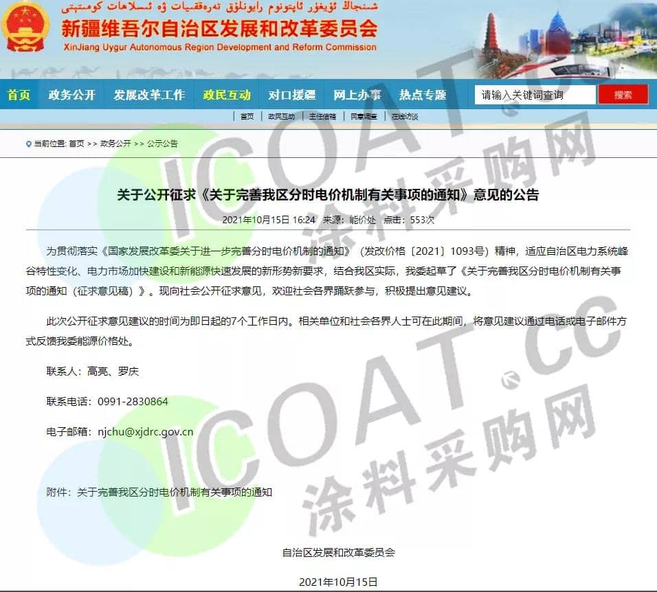 新疆維吾爾自治區發展和改革委員會發布了關于公開征求《關于完善我區分時電價機制有關事項的通知》意見的公告,尖峰時段用電價格在峰段電價基礎上每千瓦時上浮20%。