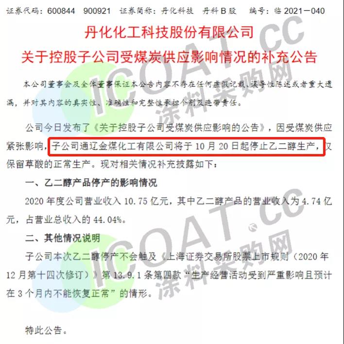 據(jù)涂料采購網(wǎng)不完全統(tǒng)計,9月中下旬以來,鈦白粉、顏填料、乳液、助劑等產(chǎn)品在限電、缺氣大面積停產(chǎn)減產(chǎn)的背景下,掀起一輪又一輪猛烈的漲價潮,基礎(chǔ)化工產(chǎn)品更是瘋狂漲價,國內(nèi)近百家企業(yè)集體發(fā)布漲價函,在10月1日前后同時漲價。