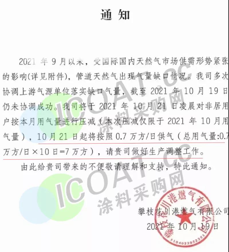 四川攀枝花川港燃氣有限公司:將于2021年10月21日凌晨對非居用戶按本月用氣量進行壓減(本次壓減僅限于2021年10月用氣量),10月21日起將按照0.7萬方/日供氣(總用氣量:0.7萬方/日×10日=7萬方)。