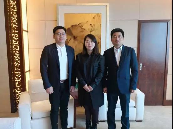 涂料采購網市場總監江雪(中)與宇星總經理單淼(左)、銷售總監陳濤(右)合影