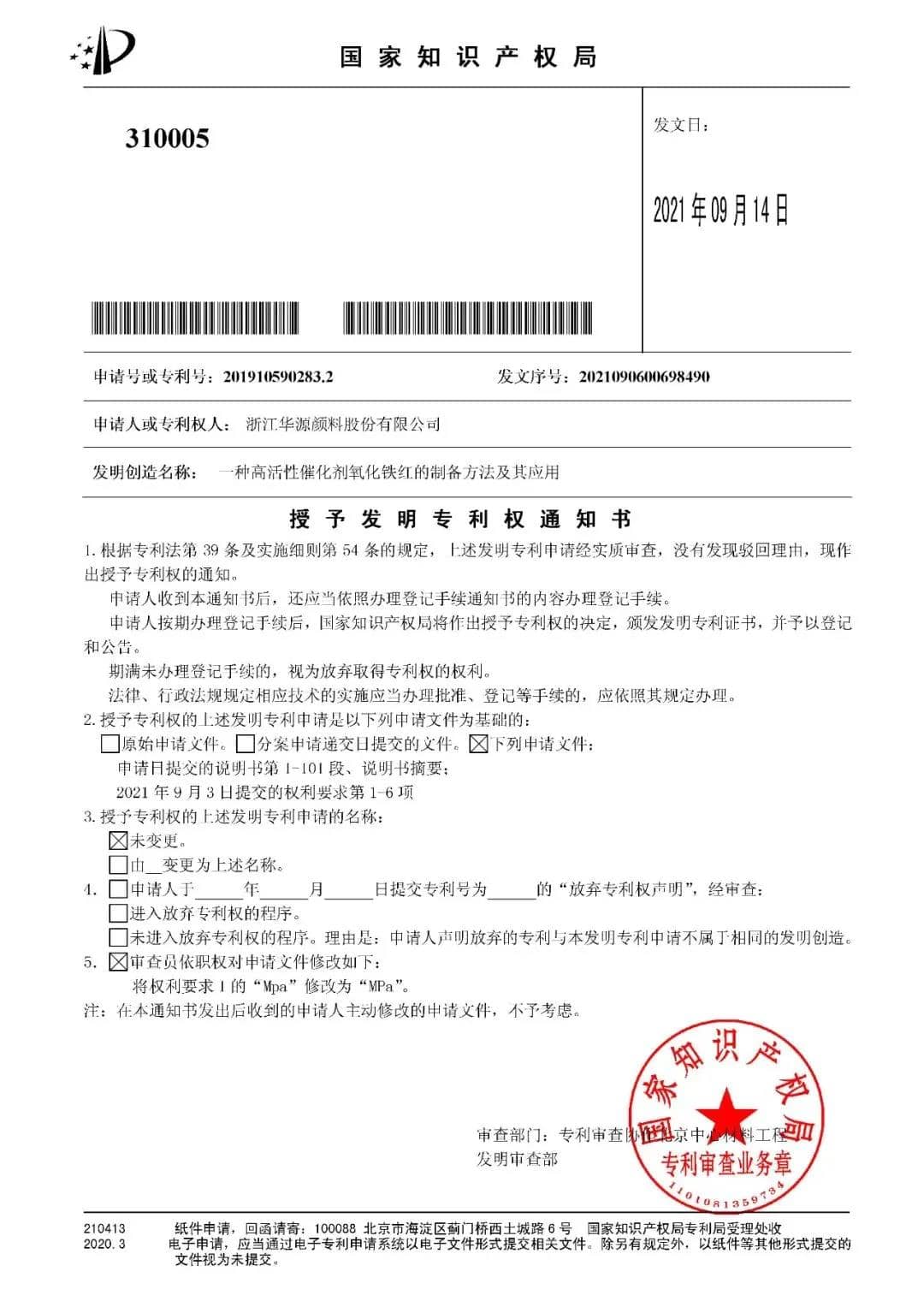 華源顏料董事長竺增林表示:一直以來,華源顏料始終堅持創新驅動發展戰略,全面推動科技創新、管理創新,以創新為引擎,向創新要市場、要品牌、要效益,在新產品市場份額顯著提升的同時,企業核心競爭力也得到持續增強。下一步華源顏料將進一步圍繞產品、技術開發中的新點、重點、難點,開展專項攻關,同時做好科研成果的轉化工作,將產品做細、做精、做專,更好為客戶提供優質的產品和高效的服務。