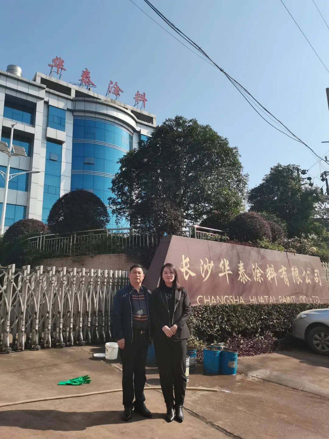 涂料采購網市場總監江雪(右)與華泰涂料董事長陳華(左)合影