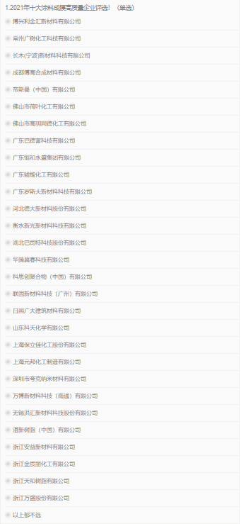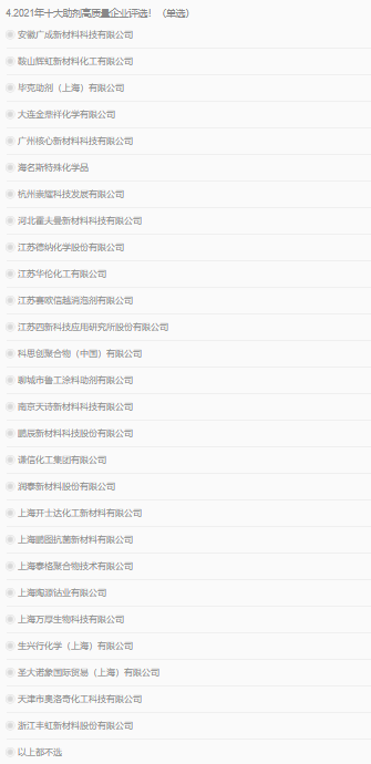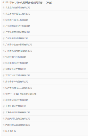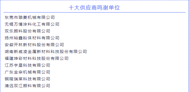 千帆競發(fā),百舸爭流,建設(shè)高質(zhì)量強企,大勢所趨、勢在必行。涂料采購網(wǎng)作為涂料行業(yè)最大的新媒體服務(wù)平臺,始終關(guān)注成膜物質(zhì)、顏填料、助劑、機械設(shè)備等領(lǐng)域的高質(zhì)量發(fā)展。為推動涂料供應(yīng)商的高質(zhì)量發(fā)展,為下游企業(yè)提供采購依據(jù)。涂料采購網(wǎng)聯(lián)合各大涂料百強企業(yè),開展“2021年十大優(yōu)秀涂料供應(yīng)商評選活動”,通過實地調(diào)研、涂料企業(yè)推薦、線上評選等多個環(huán)節(jié),最終評選出“十大優(yōu)秀供應(yīng)商”,為涂料企業(yè)的選擇提供切實可行的參考。