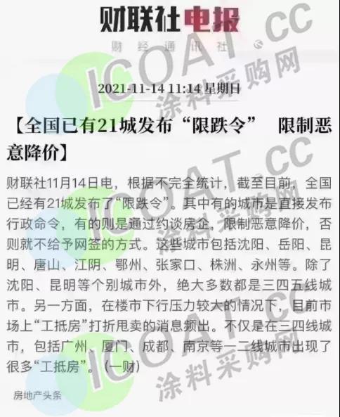 涂料采購網注意到,雖然同為“限跌令”,但政策口徑并不一致。有城市是直接限制房企降價幅度:降幅幅度不得超過15%(或10%、8%,無統一標準),否則一律不予網簽。有城市則將禁止“低價傾銷” 作為要求:不得以任何理由私自低價(如低于成本價、變相降價)等傾銷擾亂該區房地產正常秩序。另有城市則直接明確,嚴厲打擊 “惡意降價” 行為。