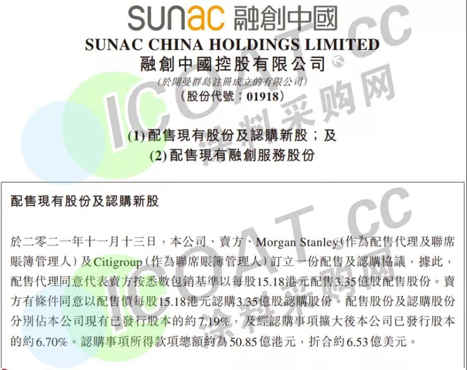 另外,融創(chuàng)國(guó)際投資控股有限公司(作為賣方)與MorganStanley(作為配售代理及聯(lián)席賬簿管理人)及Citigroup(作為聯(lián)席賬簿管理人)簽訂融創(chuàng)中國(guó)、融創(chuàng)服務(wù)配售協(xié)議。預(yù)計(jì)配售現(xiàn)有融創(chuàng)中國(guó)股份及認(rèn)購(gòu)新股,以及配售現(xiàn)有融創(chuàng)服務(wù)股份合計(jì)所得款項(xiàng)總額約為9.52億美元。融創(chuàng)中國(guó)稱,認(rèn)購(gòu)事項(xiàng)所得款項(xiàng)凈額中的一半將用于一般運(yùn)營(yíng)資金,另一半將用于償還貸款。