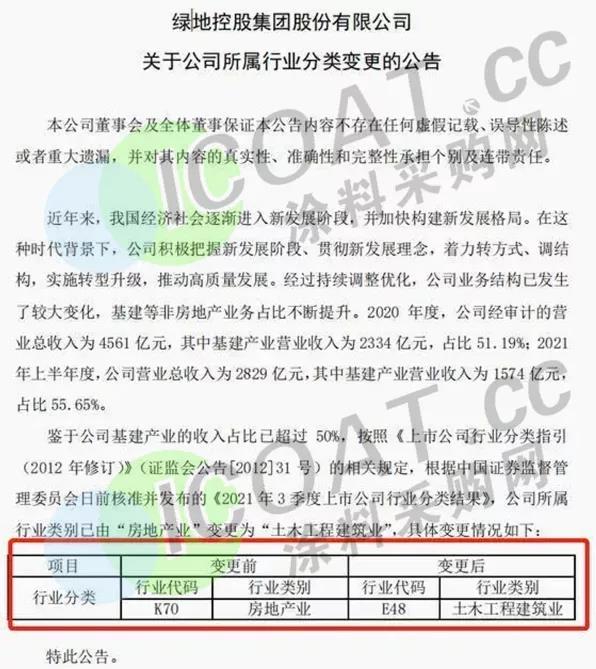 逃避“三條紅線”,綠地集團(tuán)變更行業(yè)類別為“土木工程建筑業(yè)”